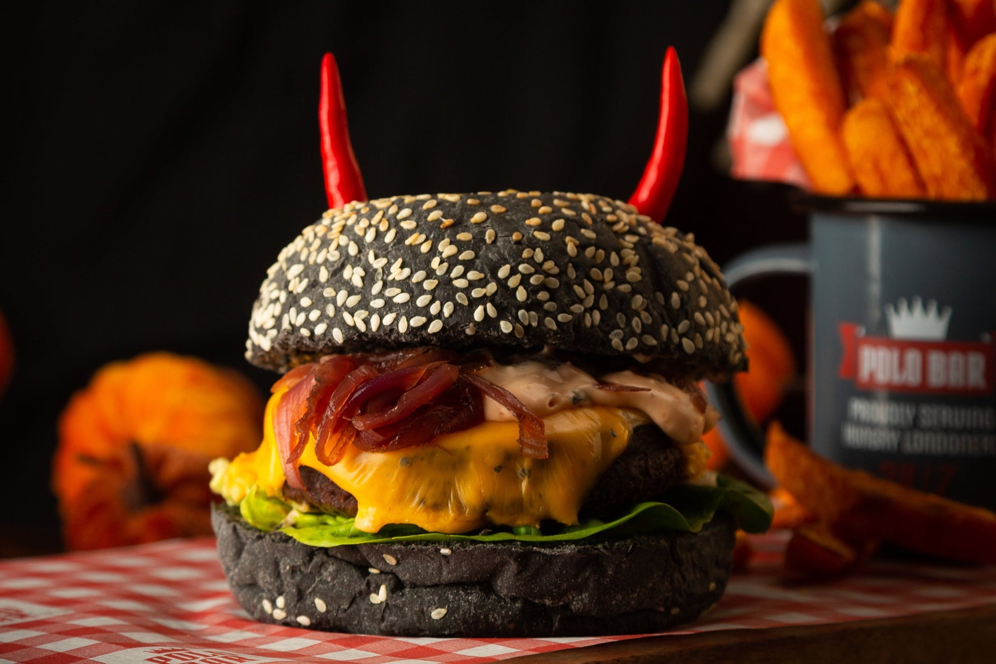 Plant-based burger, burger relish, cheddar cheese, caramelised red onion confit, sriracha mayo & red chillies.